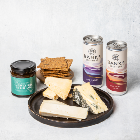 Comprising of three brilliant, British cheeses alongside tasty condiments, crackers, and delicious wine.