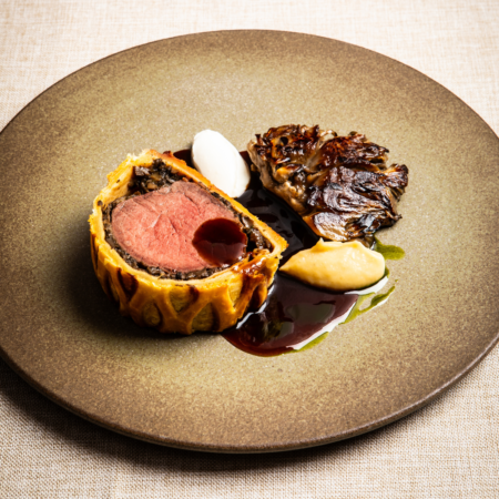 Unfolding with a Thyme & Amaretto Sour cocktail, embark on a journey of delectable Oldstead culinary favourites, from delightful canapés and warm focaccia to burrata and red chicory, followed by a Tunworth & Truffle Wellington as the main attraction. The evening ends with chocolate crémeux topped with a luxurious caramel custard.