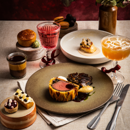 Your experience begins with a fragrant Thyme & Honey Amaretto Sour cocktail before unfolding into a journey of refined delights, from elegant canapés and warm Oldstead focaccia to a beautifully balanced scallop course, culminating in our iconic Beef Wellington as the show-stopping centrepiece. The evening draws to a sumptuous close with a rich chocolate crémeux and silky caramel custard, the perfect finale to an unforgettable evening.