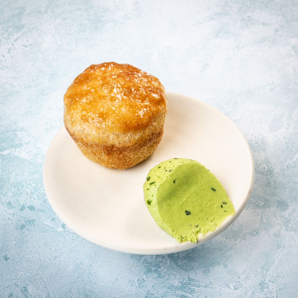 To begin: Oldstead Focaccia Boule with whipped herb butter.