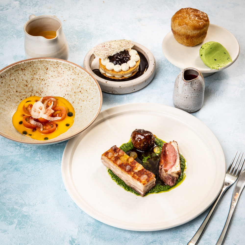 Take a journey through the Time of Abundance season with our four-course Core Menu. Featuring a chilled Sungold tomato soup, Yorkshire lamb served three ways and a blackcurrant & lemon verbena sponge, it is a celebration of the finest summer produce from our farm, kitchen garden and surrounding countryside.